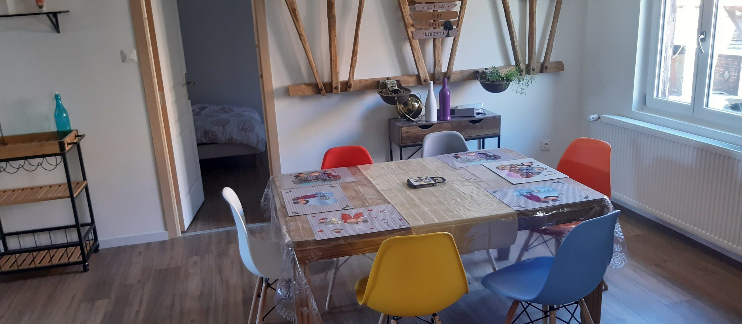 Nous louons un gîte de 81 m² classé 4 Etoiles en meublé de tourisme et 4 Epis chez Gite de France, situé dans un ancien corps de ferme Alsacien. Il est composé d’une chambre avec un lit double et d’une chambre avec 2 lits simples, un salon équipé d’un couchage convertible, une cuisine totalement équipée, une salle à manger, une salle de bain équipée, WC, et une terrasse de près de 50 m². L’accès à la piscine du propriétaire est autorisé aux horaires d’ouverture. Nous nous trouvons en plein centre Alsace, à 15 minutes de la route du vin et du Haut Kœnigsbourg. Colmar est à 20 minutes, Sélestat à 20 minutes et le parc loisir Europapark est à 30 minutes. C’est un endroit idéal pour découvrir la région et se reposer au calme, de nombreuses pistes cyclable et chemins de randonneurs vous attendent à proximité. Le gîte est non fumeur, mais un cendrier est à votre disposition sur votre terrasse.